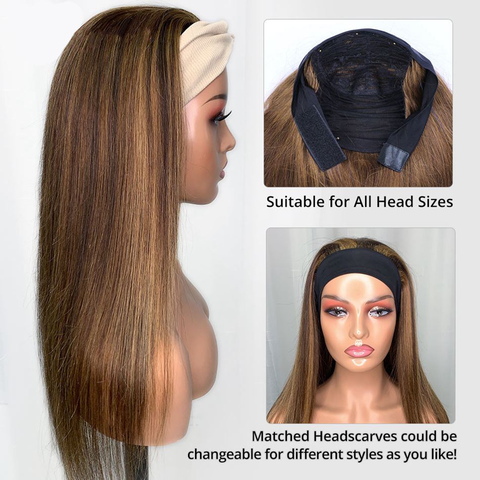 28 30 32 Inch Highlight Brown Blonde Virgin Hair Headband Wig Human Ha Yeswigs